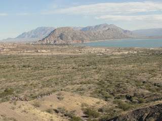 A penas se sube se puede apreciar en toda su dimensión el dique con su color turquesa, el valle de Ullúm, Lomas de las Tapias y a lo lejos la ciudad de San Juan.